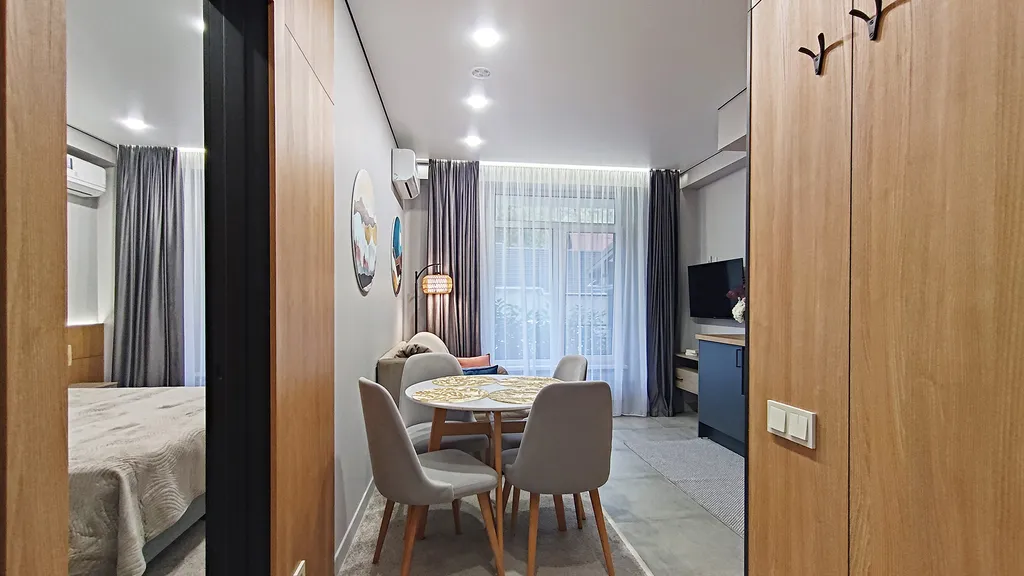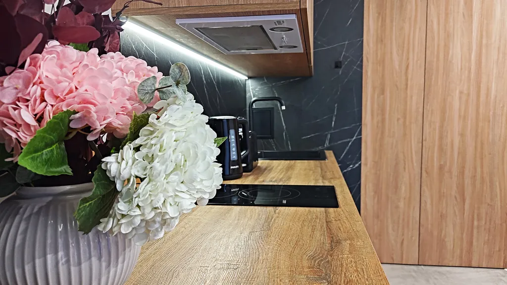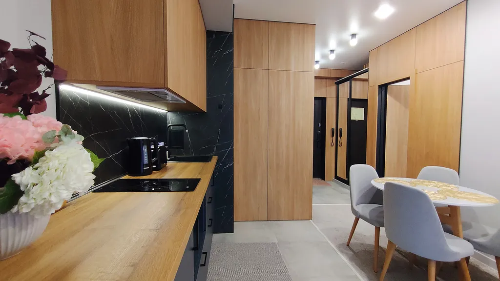 Мы создали уютную атмосферу для вас! Всё продумано до мелочей, чтобы ваш отдых был идеальным. На кухне полный комплект посуды и необходимой техники, позволяющий приготовить любимые блюда.
