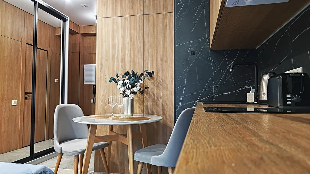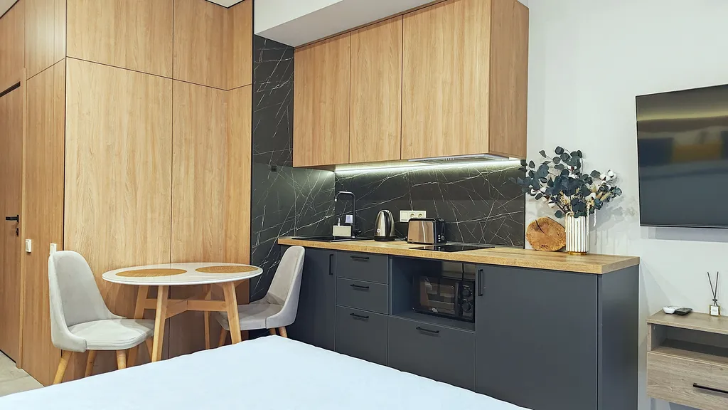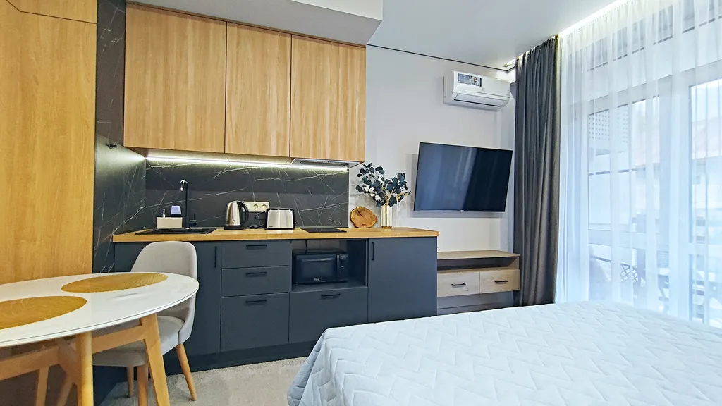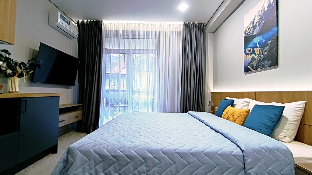 Мягкий свет льется через большие окна и наполняет пространство естественным светом и свежим воздухом. Апартамент оборудован удобной мебелью и особым вниманием к мелочам для вашего хорошего отдыха. Здесь идеальное место для тех, кто мечтает отдохнуть и насладиться покоем и вдохновением среди величественной природы
