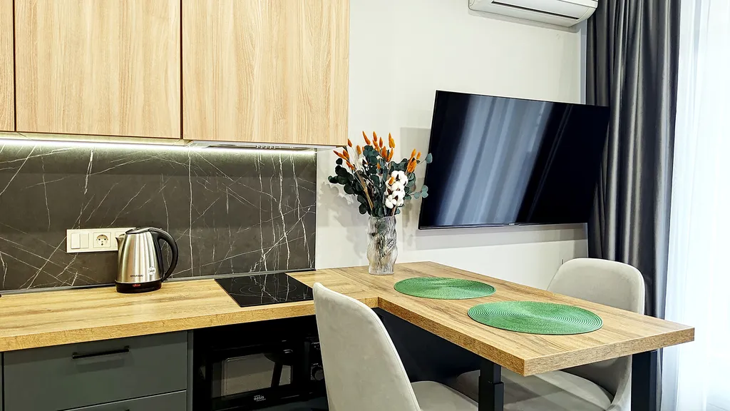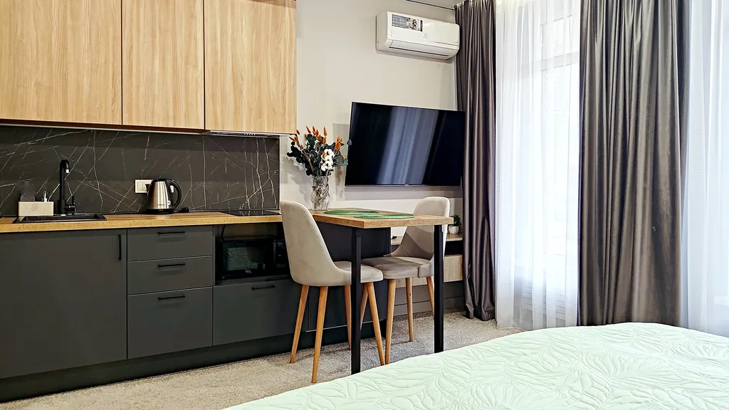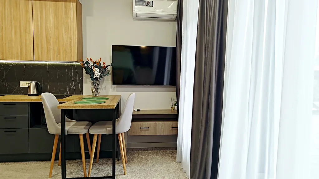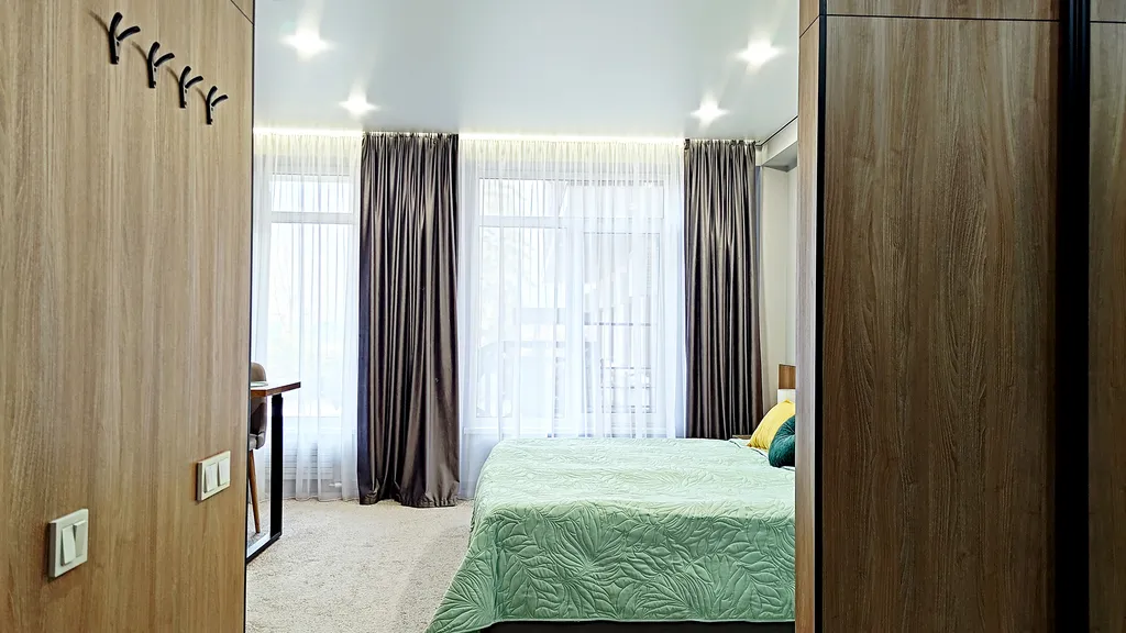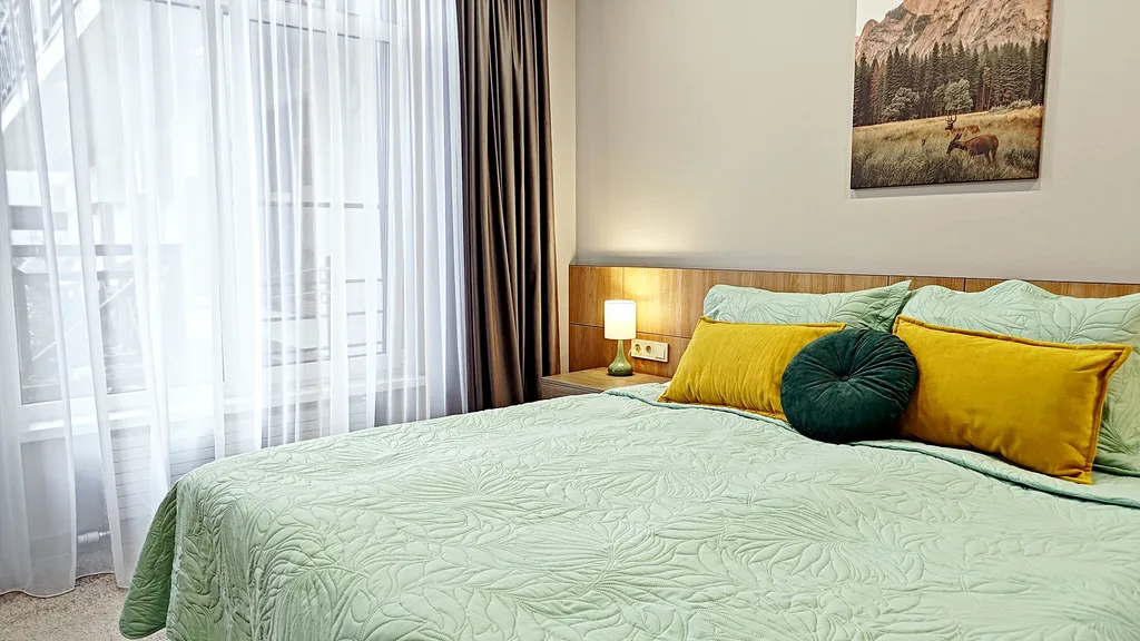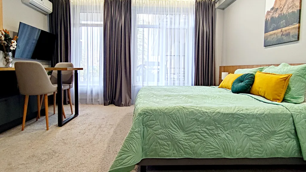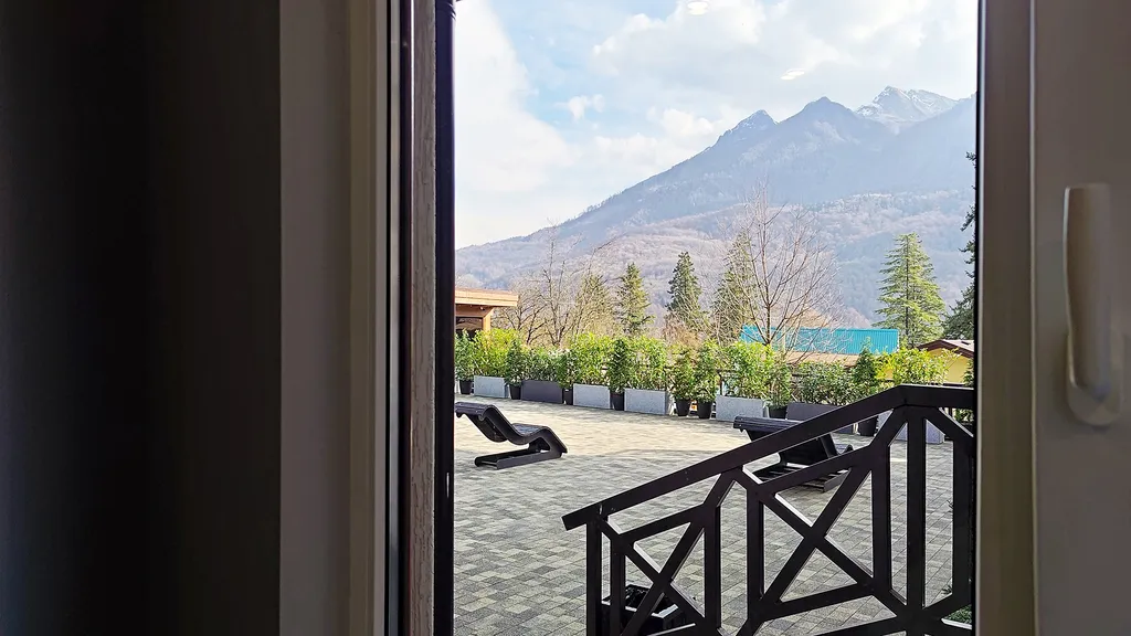 Персональный выход к зоне с шезлонгами и панорамой горных вершин. Много естественного света проникающего через большие окна, благодаря чему вы ощущаете простор и свободу. Здесь всё необходимое для приятного и спокойного отдыха
