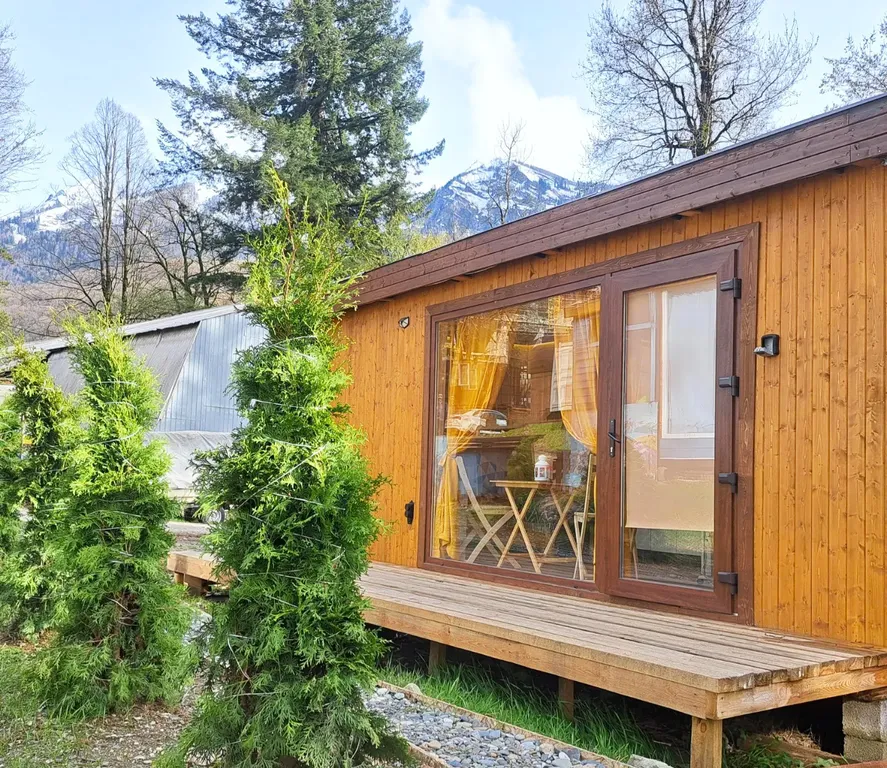 В нем Вам будет тепло и уютно проводить вечера, а днем можно загорать на открытой веранде или на крыше домика с видом на горы.