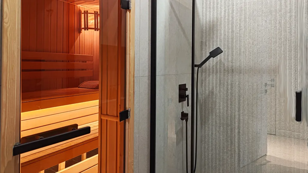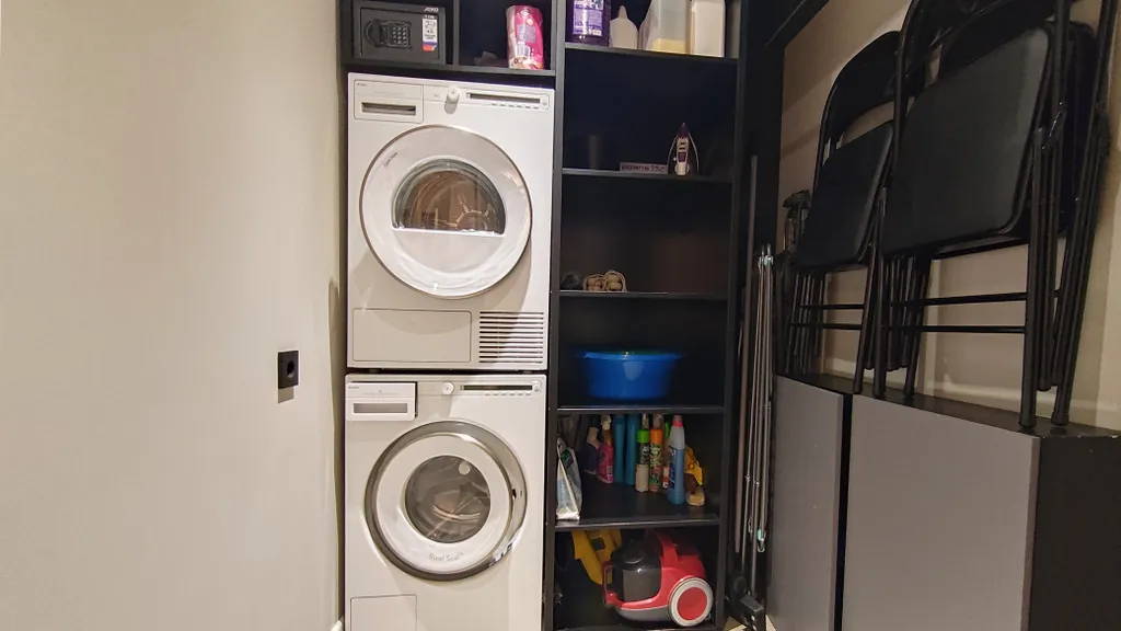 Санузел. Сауна Харвиа. Душ. Прачечная со стиральной и сушильной машинами.