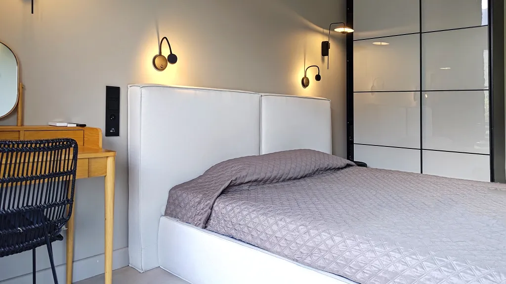 Спальня - двуспальная кровать 160*200, шкаф, туалетный столик, SMART TV