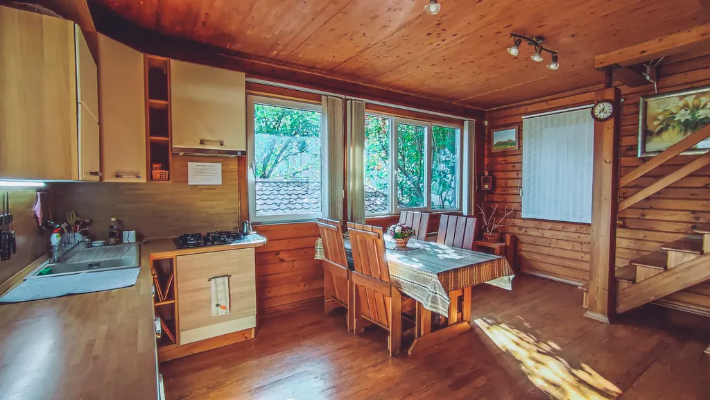 - на 1 этаже находятся кухня-столовая, баня-сауна, ванная комната;