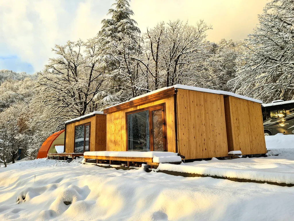 Домик расположен в самом центре поселка красная поляна по адресу защитников кавказа 65/4 на территории турбазы "горный воздух".