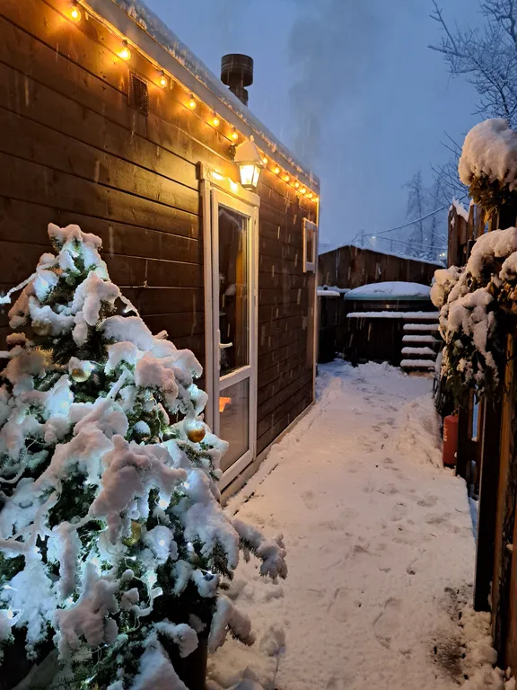 В домике очень тепло. Отапливается большим обогревателем, а также кондиционером.