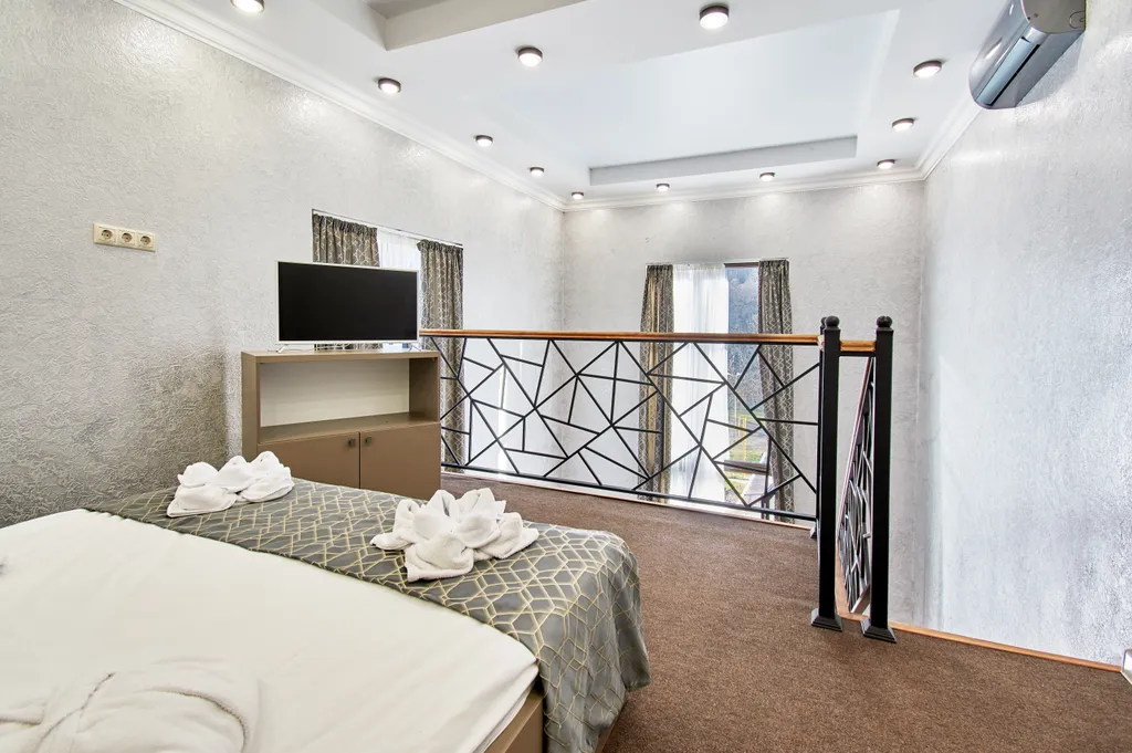 Четырёхместный номер двухуровневый с двуспальной кроватью на Красной Поляне - аренда жилья по лучшей цене!