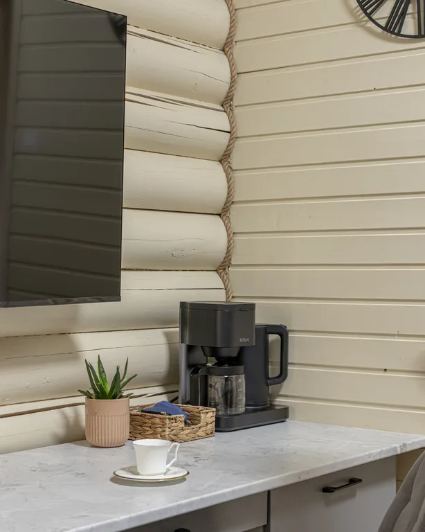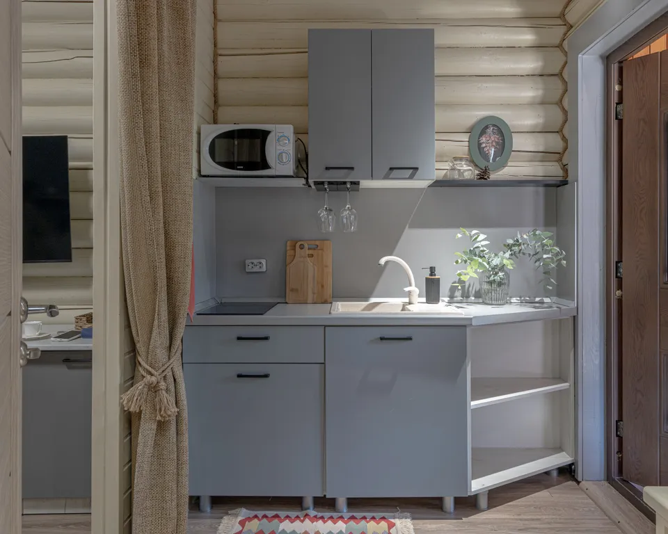 Люкс "Скандинавия" имеет кухонную зону, оснащённую варочной панелью, кофеваркой, чайником и микроволновкой.