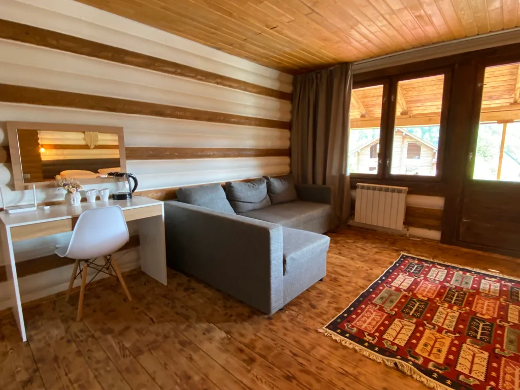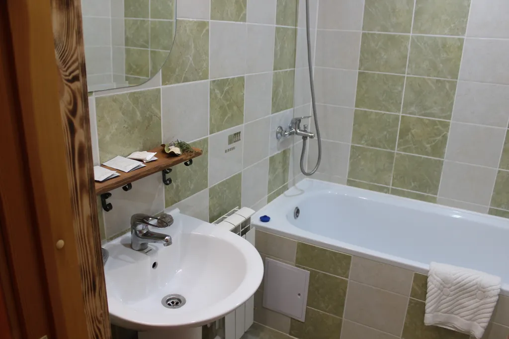 Уютная комната для 2-4х человек, санузлом с ванной, с видом на горы.