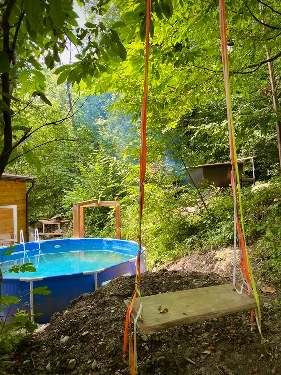 Представьте: утро начинается с кофе с видом на горы, днём прогулки по поляне, вечером баня и чан под звёздами…