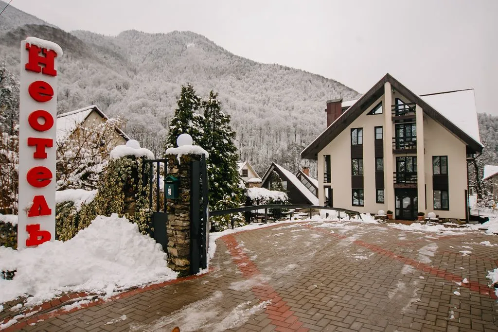 Неотель - новый гостевой дом в центре п. Красная Поляна с уютными и комфортными номерами. На территории есть парковка, большая баня, круглогодичный подогреваемый бассейн, кафе, кинотеатр, красивый двор, вид на горы. До подъемников, казино и торговых центров 10 мин езды. В пешей доступности рестораны, магазины, аптеки, автобусные остановки. Ждём вас в гости!